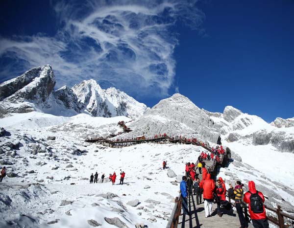 游人仰望它,甚至仰慕它。不管是中外名士,还是市民游客,它一视同仁,眼中所能领略的景点一个也不会少。无论时代怎样变迁,社会怎样进步,玉龙雪山将永久记录着游人的点点滴滴。