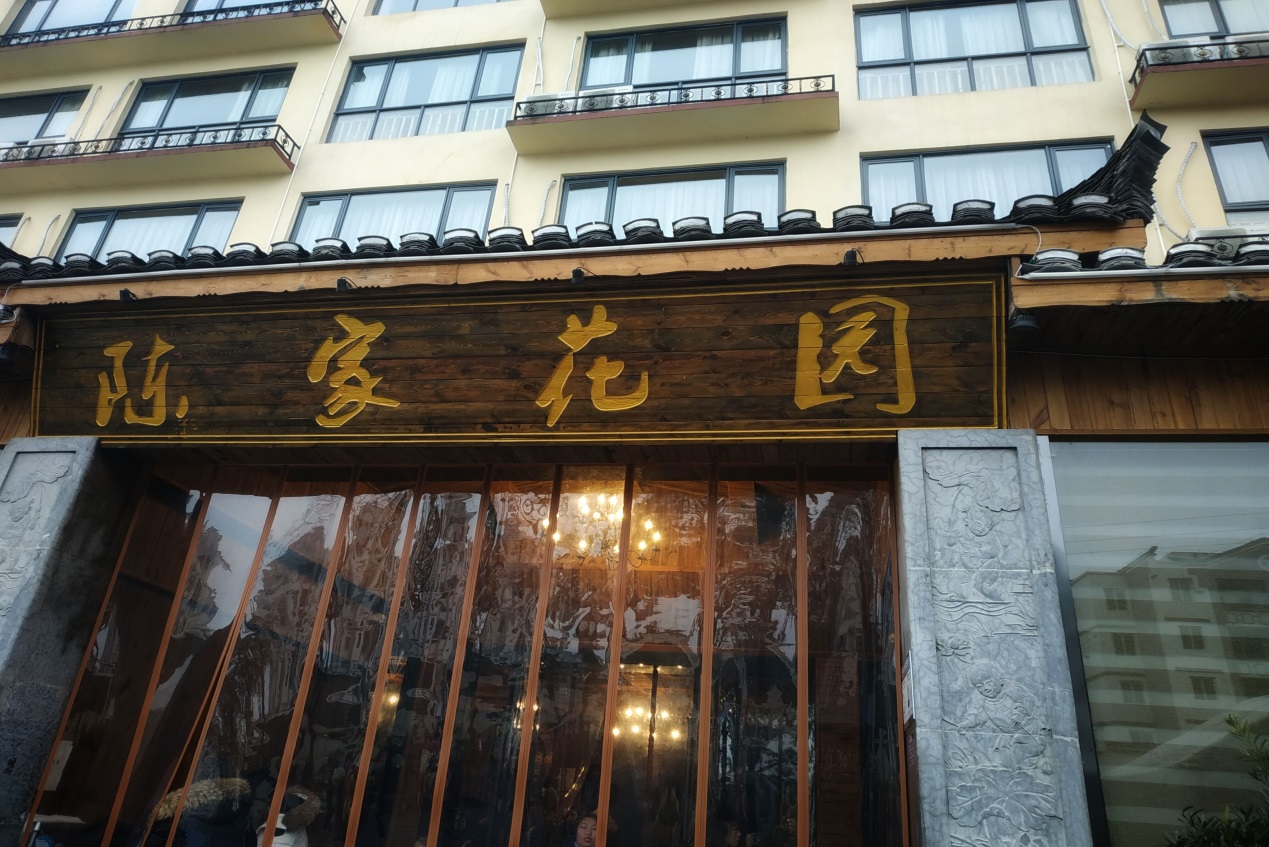 我们先把车停在了酒店门口,进去先把房间安排好,然后就直接去那边吃饭,是仙女镇的一家叫“陈家花园”的饭店。