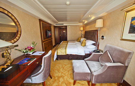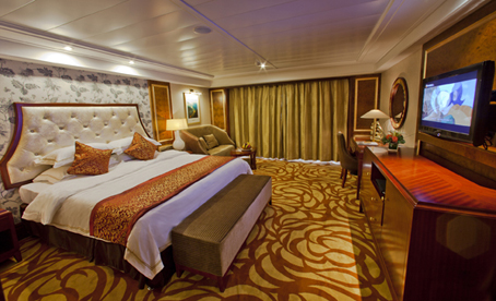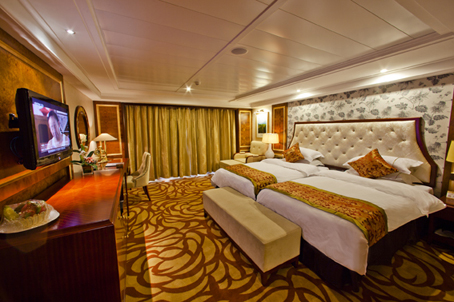 邮轮所有客房均采用五星级酒店标准配置床上用品和卫浴用品。