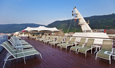 邮轮上所有客房均有独立观景阳台,可令游客随时欣赏到长江的壮丽景观。
