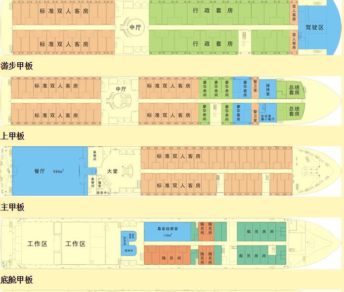 长江唯一采用国际造船专家最先进理念和技术,并参照海洋邮轮标准设计。