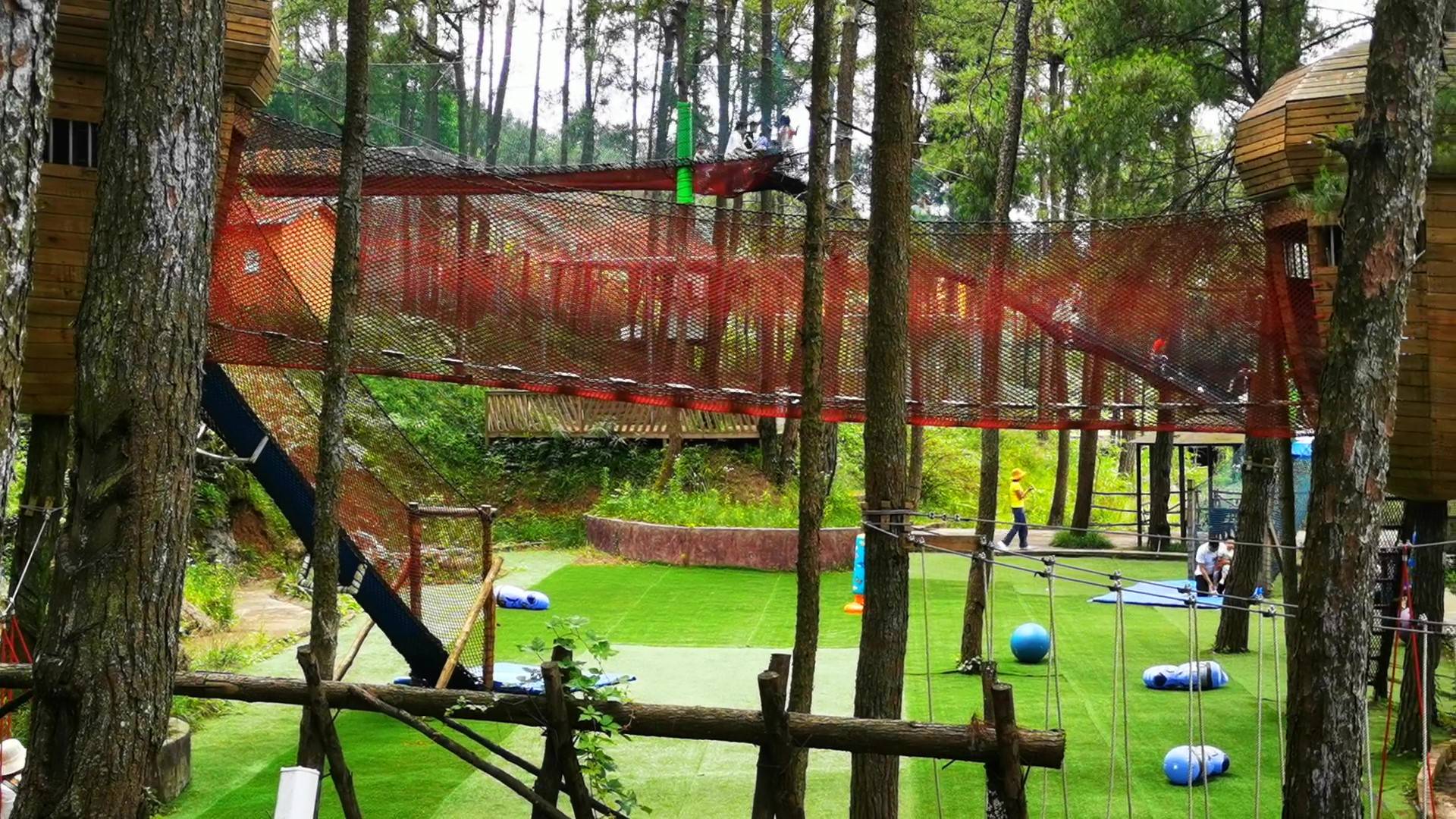 丛林部落:九重天景区上行2公里,部落属新型户外丛林游乐园,占地8000平方,包含丛林魔网、坚果屋、丛林滑索、丛林滑道、松鼠乐园、孔雀屋、泡泡车等新奇户外体验项目,是家庭、团建、亲子游乐的网红打卡点。