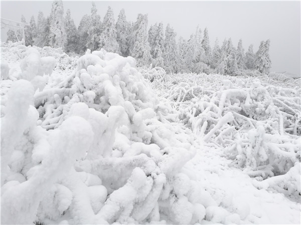 连日来的强降温终于迎来好消息,重庆自由行小编从武隆景区获悉,平均海拔1900米的仙女山迎来今冬第一场雾凇冰雪奇观,33万亩林海一夜之间宛若披上白色霜花,分外美丽!